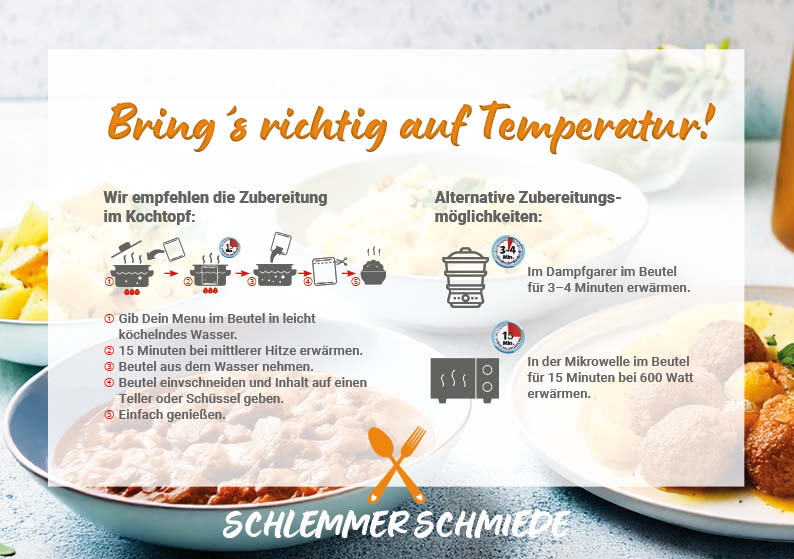 Bei der Schlemmerschmiede musst du nicht zwischen Qualität, Gesundheit und Bequemlichkeit wählen.